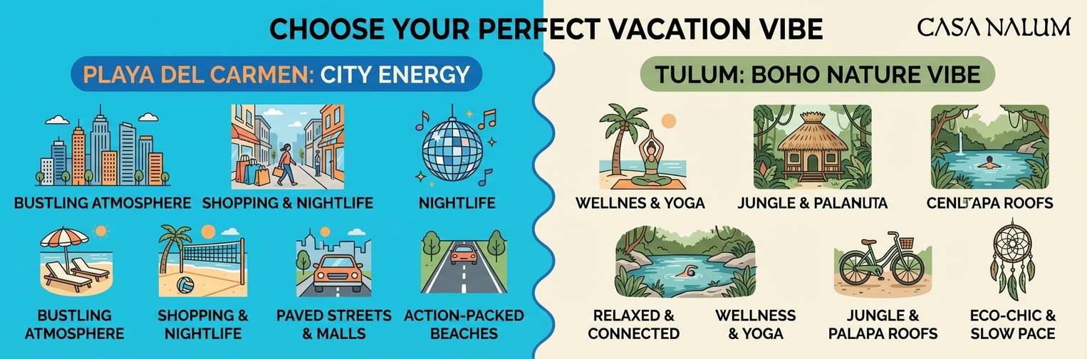At Casa Nalum, we have lived and worked in this beautiful region for years. We know the rhythm of the waves and the energy of the towns. Both destinations are amazing, but they offer very different experiences.
